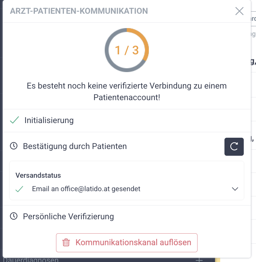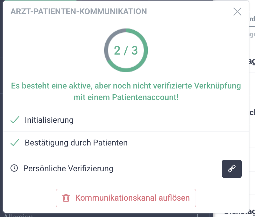 Den aktuellen Status der Verknüpfung können Sie jederzeit in der Patientenakte einsehen und so den Fortschritt des Prozesses nachvollziehen.