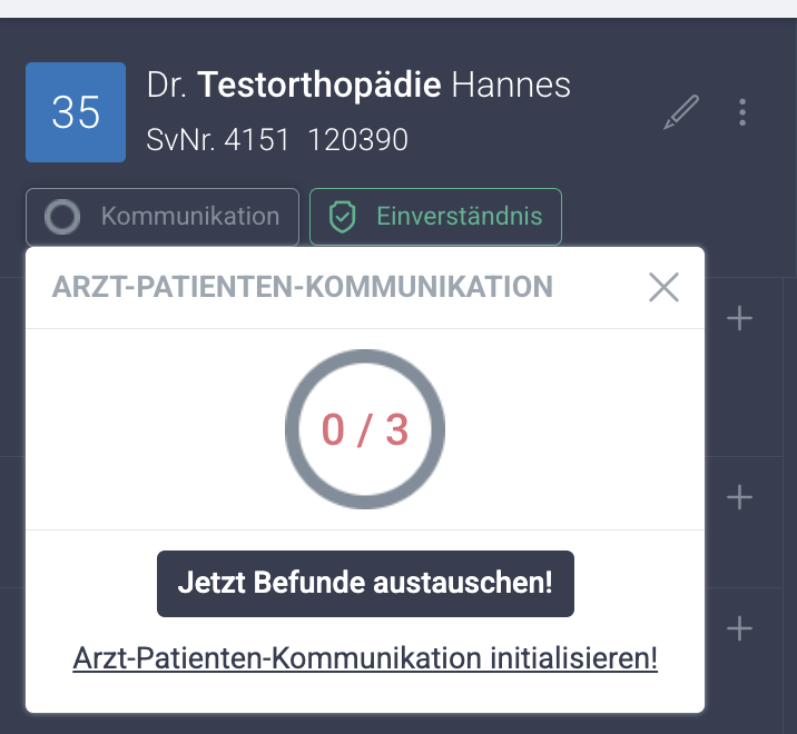 - Klicken Sie links oben auf „Arzt-Patienten-Kommunikation initialisieren“