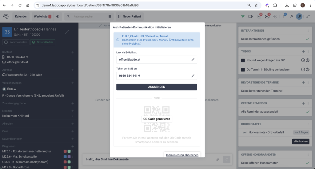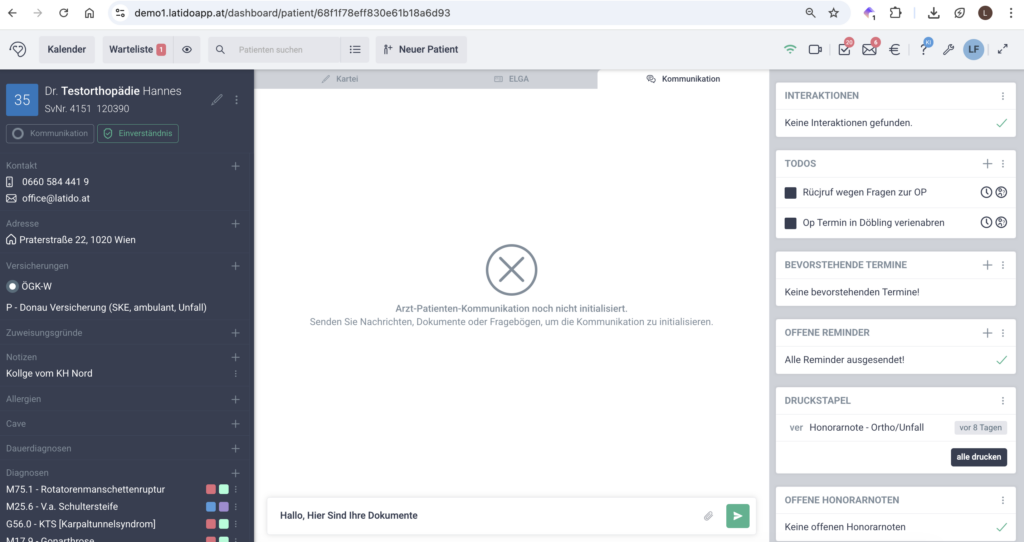 Bevor Sie die Kommunikation starten, stellen Sie sicher, dass beim Patienten in den Patientenstammdaten sowohl: