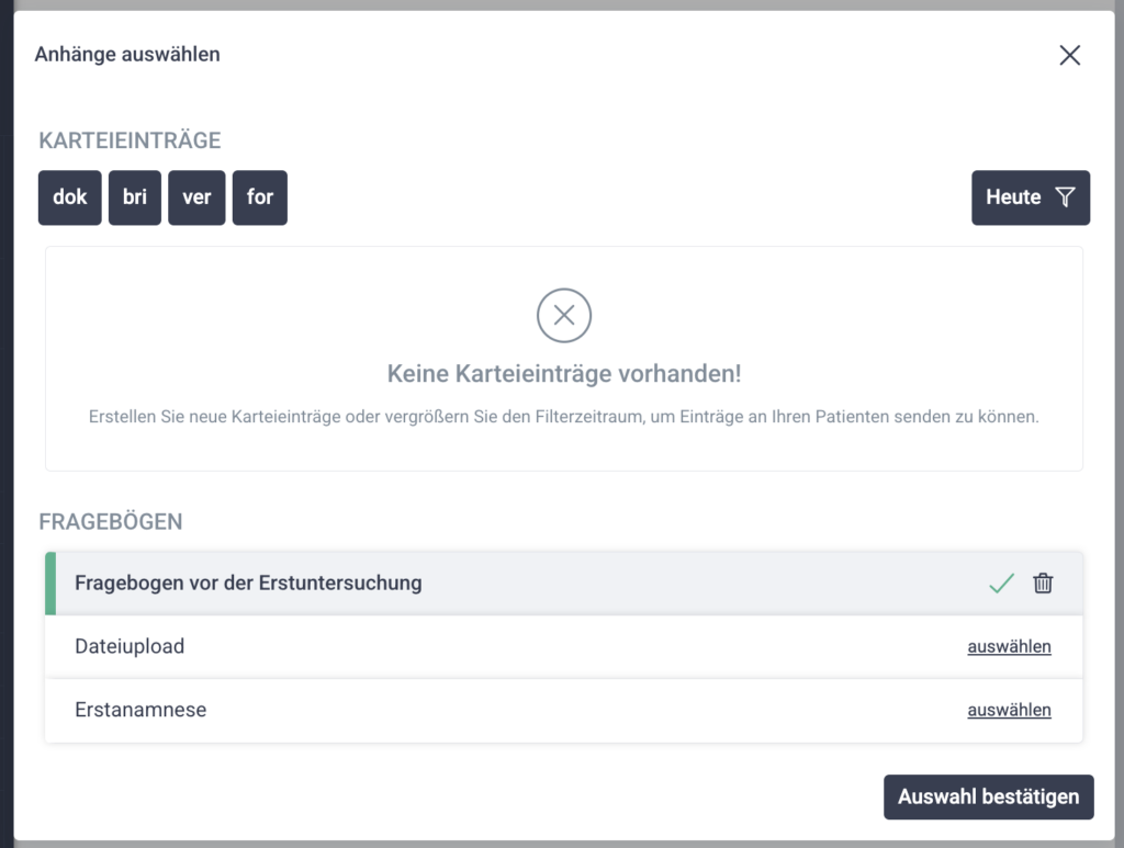 - Dokumentenanfragen stellen, wenn Patient:innen Unterlagen hochladen sollen.