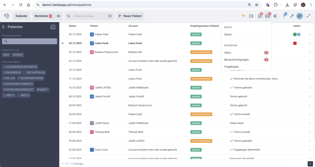 Patienten-Inbox & Nachrichtenstatus