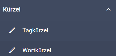 Wortkürzel sind Sätze oder Textpassagen, die in jedem Freitextfeld über die „+“-Taste auf Ihrer Tastatur aufgerufen werden können. In diesem Bereich können Sie Ihre individuellen Wortkürzel anlegen und bearbeiten.