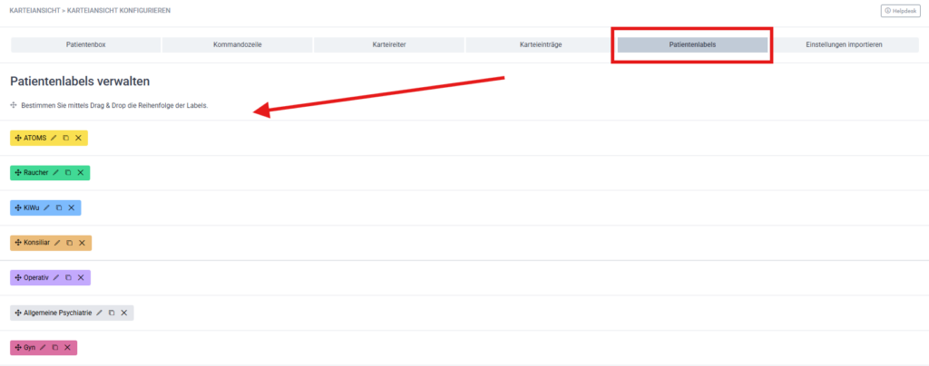 Nutzen Sie Labels, um Patient:innen bestimmten Gruppen zuzuordnen, z. B.: Diabetes, Allergien, Risikopatient:innen, Nachsorge erforderlich