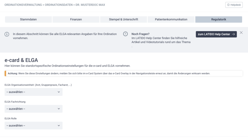 Schritt 1: Konfigurieren Sie Ihre e-card/ELGA Fachrichtungen