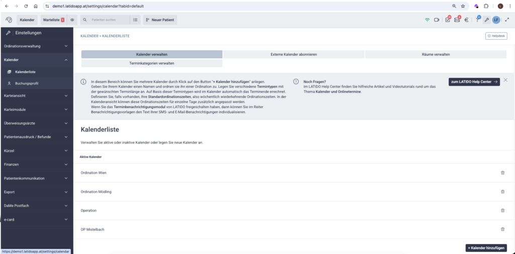 In LATIDO können Sie mehrere Kalender anlegen. Das ist besonders hilfreich, wenn Sie
