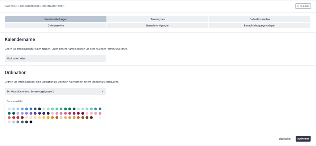 - Kalendername z. B. Ordination Wien oder Dr. Muster – Standort Mödling