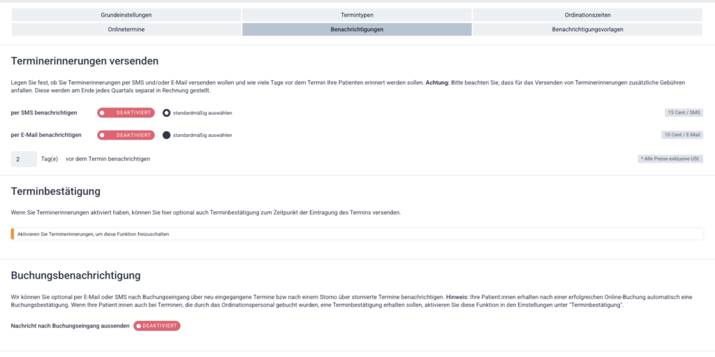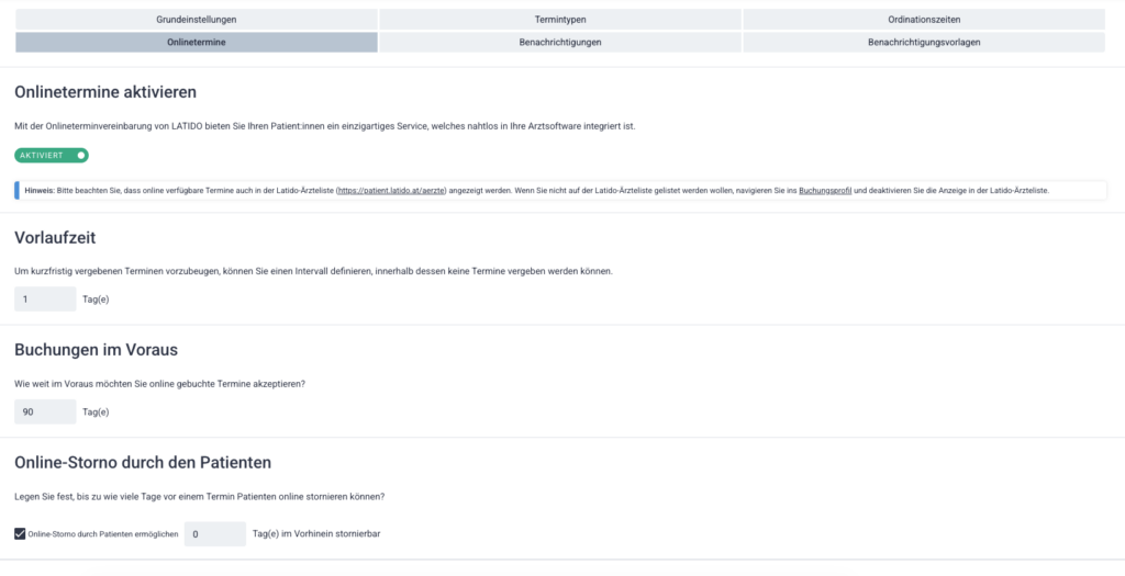 - zusätzliche Einstellungen für die Online-Terminvergabe