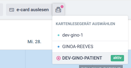- Das Patienten-Kartenlesegerät kann zu jeder Zeit gewechselt werden. Die Kartenlesegeräte erhalten fixe Farben mit denen die Kartenlesegeräte “etikettiert” werden können. Wenn ein neuer GINO hinzugefügt wird, bleiben die Farben bestehen.