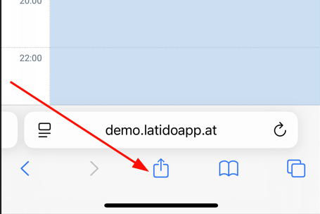 1: Öffnen Sie im Safari Browser Ihre LATIDO Webseite (xxx.latidoapp.at)