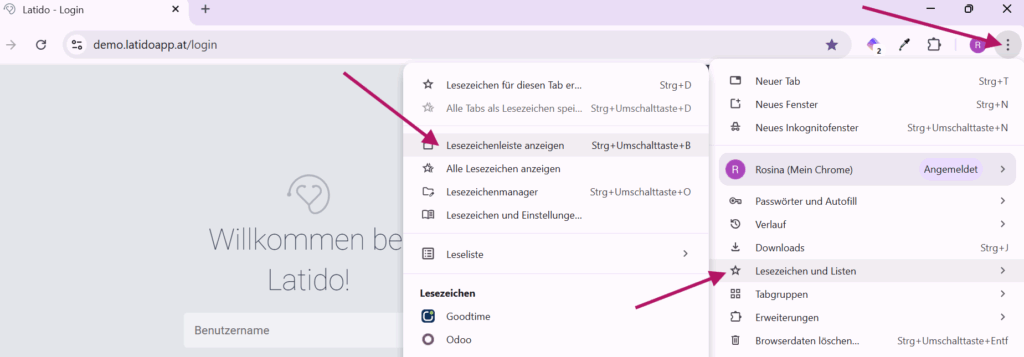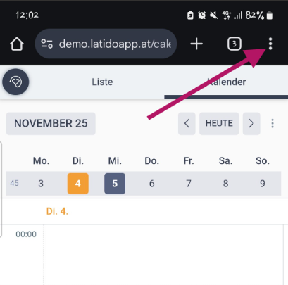 1: Öffnen Sie im Google Chrome Browser Ihre LATIDO Webseite (xxx.latidoapp.at)