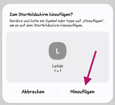 4: Das Smartphone platziert die App in Form des LATIDO Logos nun an einem freien Platz auf Ihrem Bildschirm und man kann sie wie jede beliebige App verschieben.