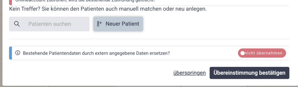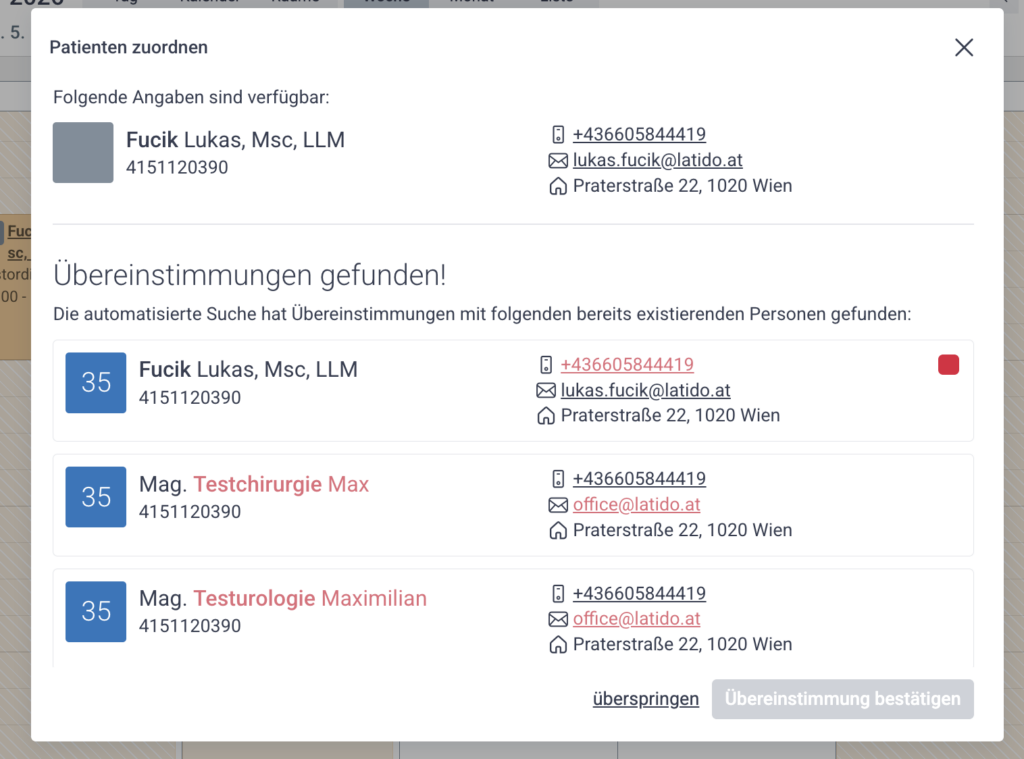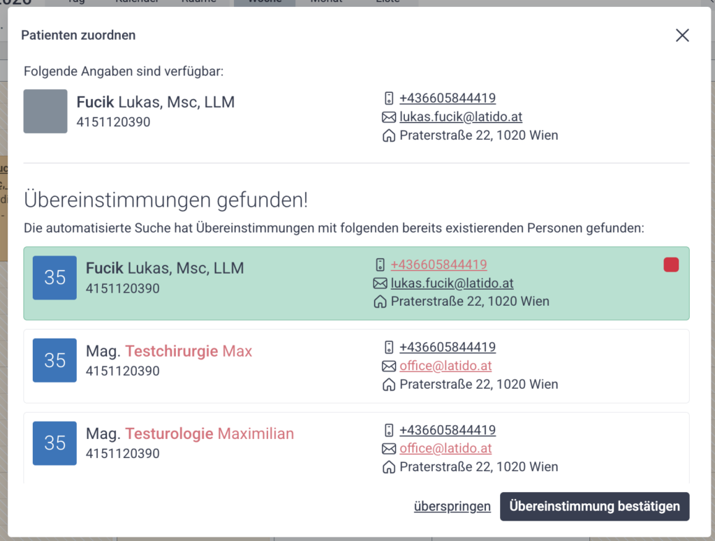 Nun prüft Latido automatisch, ob es mögliche Übereinstimmungen mit bestehenden Patientendaten gibt.