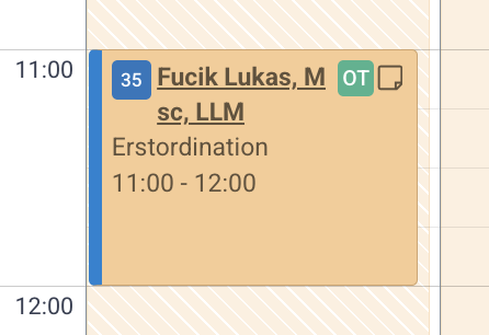 - Klicken Sie auf den betreffenden Online-Termin mit orangem „OT“.