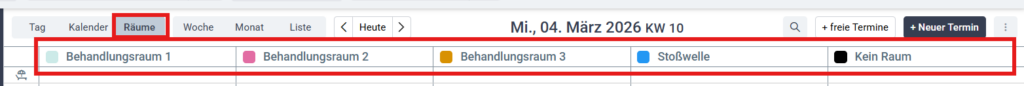 Durch zentrale Verwaltung, Verknüpfung mit Ordinationszeiten und eigene Raumansicht im Kalender wird die Raumplanung transparent, effizient und konfliktfrei organisiert.