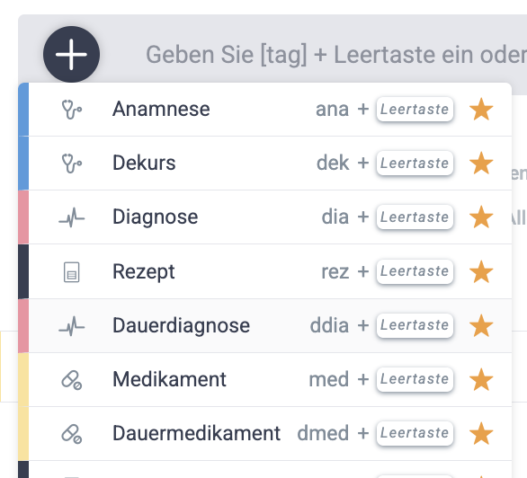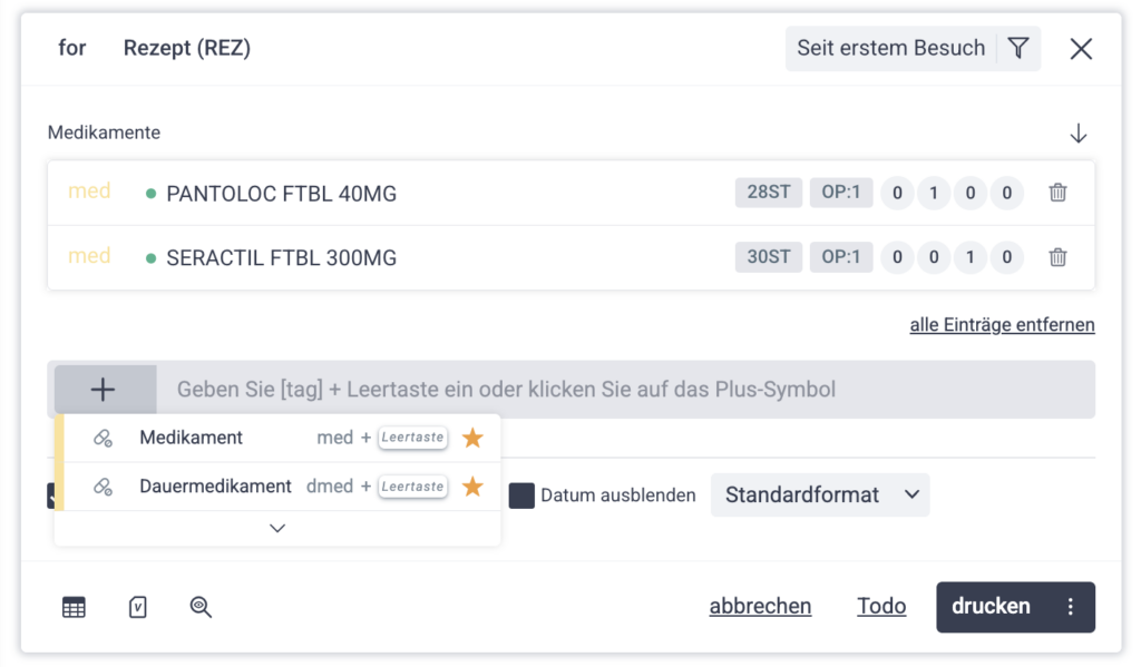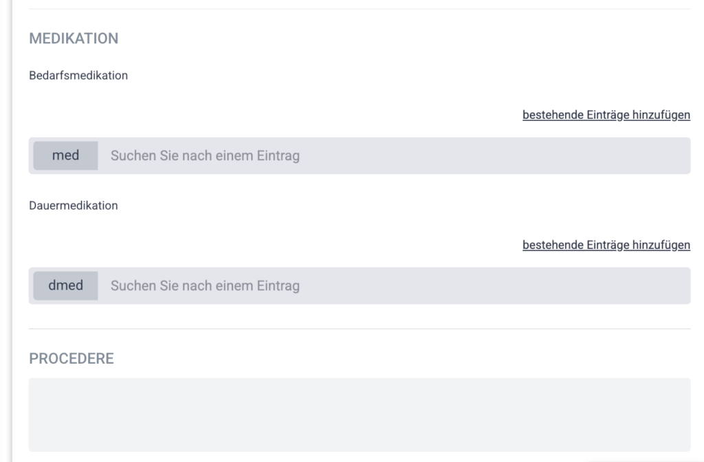 - Unten in der Maske können Sie über das Plus-Symbol neue Medikamente oder Dauermedikamente ergänzen.