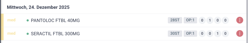 - Klicken Sie auf den roten 3-Punkte-Button neben dem Medikament.