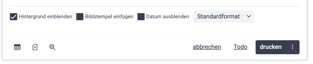- Die Option “Hintergrund einblenden” ist relevant, wenn Sie auf Rezeptvordrucke drucken.