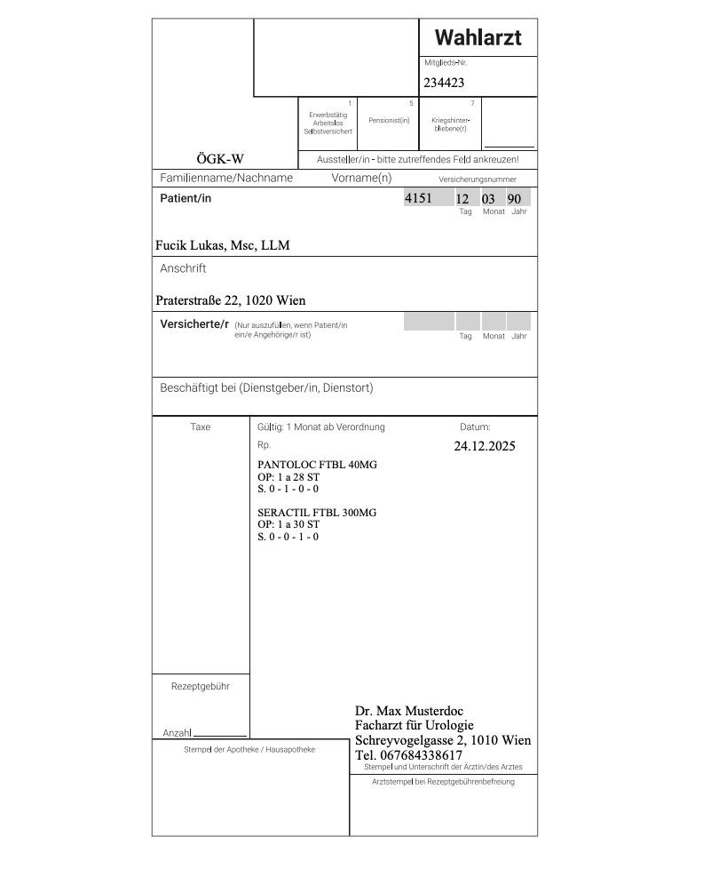 - ⚠️ Hinweis: Ein Rezept sollte immer original unterschrieben werden, damit dieses von der Krankenkasse auf Rezeptgebühr akzeptiert wird.