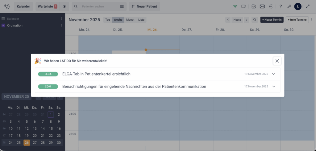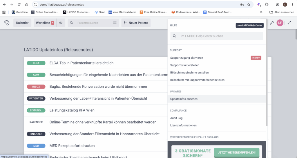 Alle bisherigen Update-Informationen finden Sie dauerhaft in der LATIDO App.