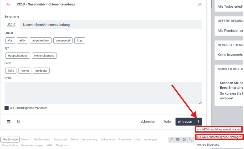 Diagnose als WKS-Diagnose eintragen