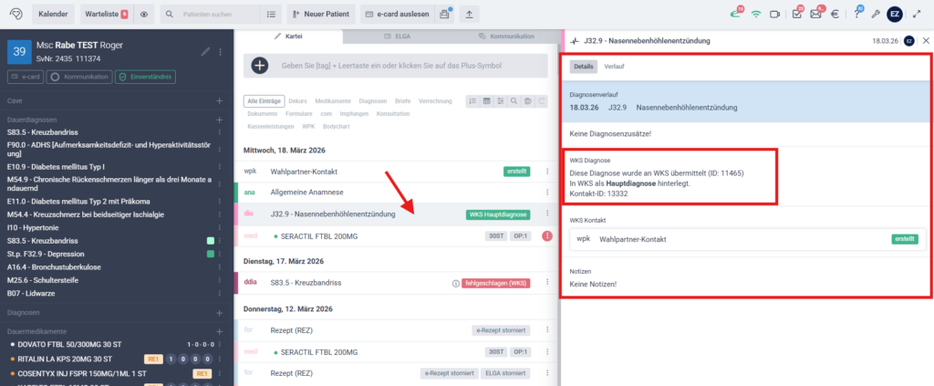 - Die ausgewählten Diagnosen werden automatisch an WKS übermittelt.