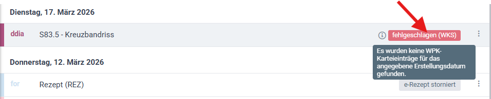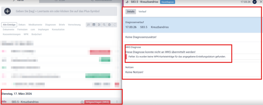 Wenn eine Diagnose nicht erfolgreich an WKS übermittelt werden kann: